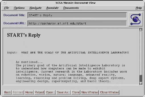 The user asks a question about the M.I.T. Artificial Intelligence Laboratory.