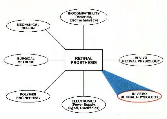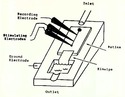 Figure 1 We have measured the thresholds for electrical stimulation of rabbit retinal ganglion cells to aid in the design of a silicon retinal prosthesis. The specific goals were to: