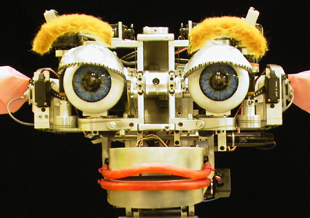 Generation of UtterancesTo engage in proto-dialogs with its human caregiver and to partake in vocal play, Kismet must be able to generate its own utterances. To accomplish this, strings of phonemes with pitch accents are assembled on the fly to produce a style of speech that is reminiscent of a tonal dialect. As it stands, it is quite distinctive and contributes significantly to Kismet's personality (as it pertains to its manner of vocal expression). However, it is really intended as a place-holder for a more sophisticated utterance generation algorithm to eventually replace it. In time, Kismet will be able to adjust its utterance based on what it hears, but this is the subject of future work.